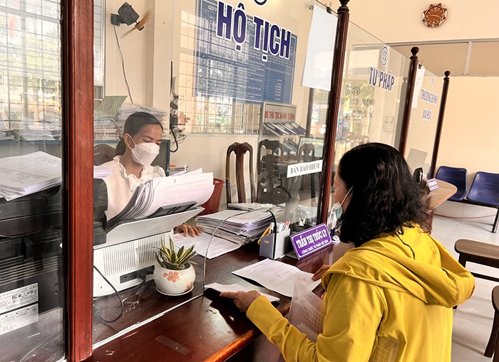 Người dân thực hiện TTHC tại Bộ phận Một cửa của phường Thới Thuận.