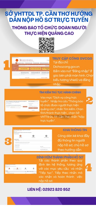 5. Sở Văn hóa, Thể thao và Du lịch hướng dẫn nộp hồ sơ trực tuyến đối với thủ tục tiếp nhận hồ sơ thông báo đoàn người thực hiện quảng cáo