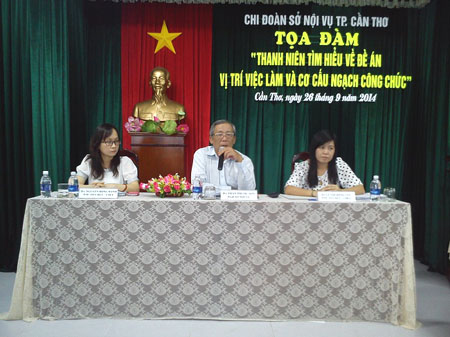 Ngày 26 tháng 9 năm 2014, tại Hội trường Ban Tôn giáo – Sở Nội vụ, Chi đoàn Sở Nội vụ thành phố Cần Thơ đã tổ chức Chương trình Tọa đàm chủ đề “Thanh niên tìm hiểu về Đề án vị trí việc làm và cơ cấu ngạch công chức theo Nghị định số 36/2013/NĐ-CP ngày 22 tháng 4 năm 2013 của Chính phủ.