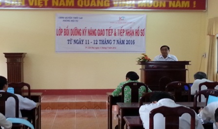 Thực hiện Kế hoạch số 58/KH-UBND ngày 11 tháng 01 năm 2016 của Ủy ban nhân dân huyện Thới Lai về công tác cải cách hành chính năm 2016, Ủy ban nhân dân huyện Thới Lai phối hợp với Công ty TNHH MTV đào tạo nguồn nhân lực KiếnTrí tổ chức lớp Bồi dưỡng kỹ năng giao tiếp và nhận hồ sơ cho công chức làm việc tại bộ phận tiếp nhận và trả kết quả cấp huyện, cấp xã.