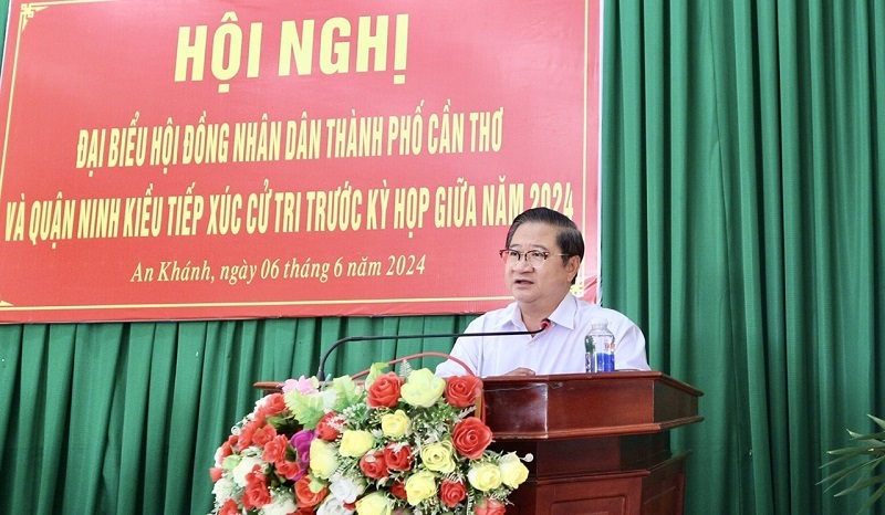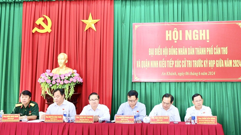 Tại buổi tiếp xúc cử tri, đại biểu HÐND thành phố và quận Ninh Kiều báo cáo với cử tri tình hình thực hiện Nghị quyết của HĐND thành phố, HĐND quận về kinh tế - xã hội, quốc phòng - an ninh 6 tháng đầu năm và phương hướng, nhiệm vụ 6 tháng cuối năm 2024; dự kiến chương trình, nội dung kỳ họp giữa năm của HĐND thành phố, HĐND quận Ninh Kiều; báo cáo kết quả giải quyết các ý kiến, kiến nghị của cử tri trước và sau kỳ họp HĐND quận.