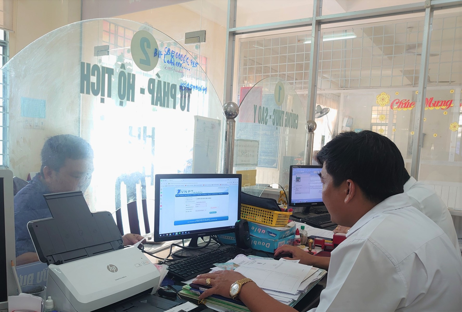 Công chức Bộ phận Một cửa phường Thới An Đông, quận Bình Thủy thực hiện TTHC cho người dân