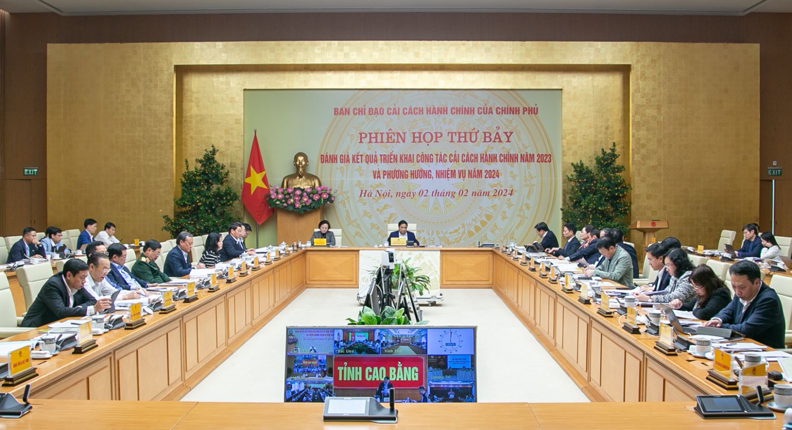Quang cảnh Phiên họp thứ bảy của Ban Chỉ đạo cải cách hành chính của Chính phủ tại điểm cầu Trụ sở Chính phủ, ngày 02/02/2024.