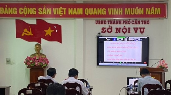 Quang cảnh Hội nghị tập huấn trực tuyến tại điểm cầu Sở Nội vụ Cần Thơ.