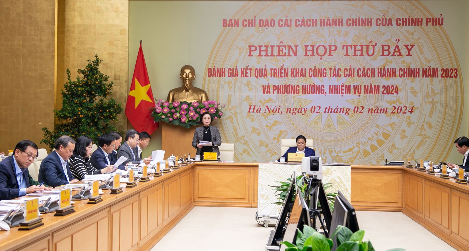 Báo cáo tại Phiên họp, Bộ trưởng Phạm Thị Thanh Trà cho biết: Năm 2023, với phương châm "Đoàn kết, kỷ cương - Bản lĩnh, linh hoạt - Đổi mới, sáng tạo - Kịp thời, hiệu quả", Chính phủ, Thủ tướng Chính phủ đã chỉ đạo sát sao, quyết liệt, tạo động lực, chuyển biến mạnh mẽ trong tổ chức thực hiện công tác cải cách hành chính của cả hệ thống hành chính và đạt được nhiều kết quả quan trọng, trên tất cả các nội dung, trọng tâm là xây dựng, hoàn thiện thể chế, cải cách thủ tục hành chính (TTHC), chuyển đổi số; nâng cao kỷ luật, kỷ cương hành chính; tháo gỡ những điểm nghẽn về thể chế, TTHC đang cản trở sự phục hồi, phát triển kinh tế - xã hội. Chính phủ, Thủ tướng Chính phủ đã ban hành nhiều nghị quyết, chỉ thị, công điện để chỉ đạo, đề ra những nhiệm vụ, giải pháp cấp bách, trọng tâm; tập trung vào cải cách TTHC, đẩy nhanh tiến độ giải ngân vốn đầu tư công, cải thiện môi trường đầu tư kinh doanh, tăng cường kỷ luật, kỷ cương...