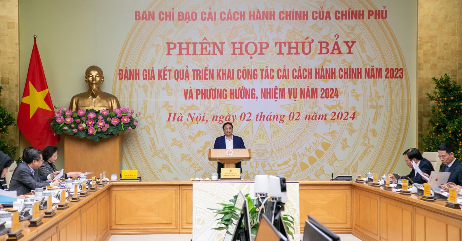 Chiều 02/02/2024, Thủ tướng Phạm Minh Chính, Trưởng ban Ban Chỉ đạo cải cách hành chính của Chính phủ đã chủ trì Phiên họp thứ bảy của Ban Chỉ đạo về đánh giá kết quả triển khai công tác cải cách hành chính năm 2023 và phương hướng, nhiệm vụ năm 2024. Tham dự Phiên họp tại điểm cầu Trụ sở Chính phủ có Bộ trưởng Bộ Nội vụ Phạm Thị Thanh Trà - Phó Trưởng ban Ban Chỉ đạo và các thành viên Ban Chỉ đạo.