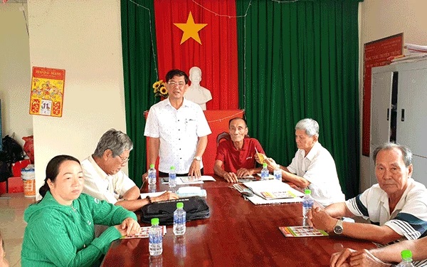 Trợ giúp viên pháp lý Trung tâm TGPL Nhà nước TP Cần Thơ tuyên truyền quy định pháp luật cho người dân ở ấp Trường Phú A, xã Trường Long, huyện Phong Ðiền, TP Cần Thơ.