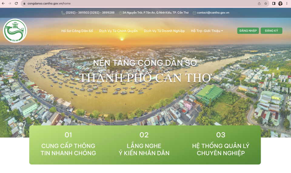 Giao diện trang chủ nền tảng Công dân số thành phố Cần Thơ. Ảnh Hồng Thắm