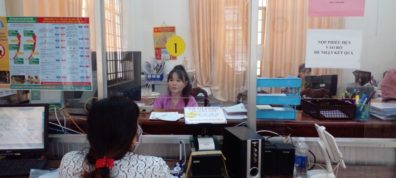 Người dân nộp hồ sơ làm lý lịch tư pháp tại Bộ phận Tiếp nhận và Trả kết