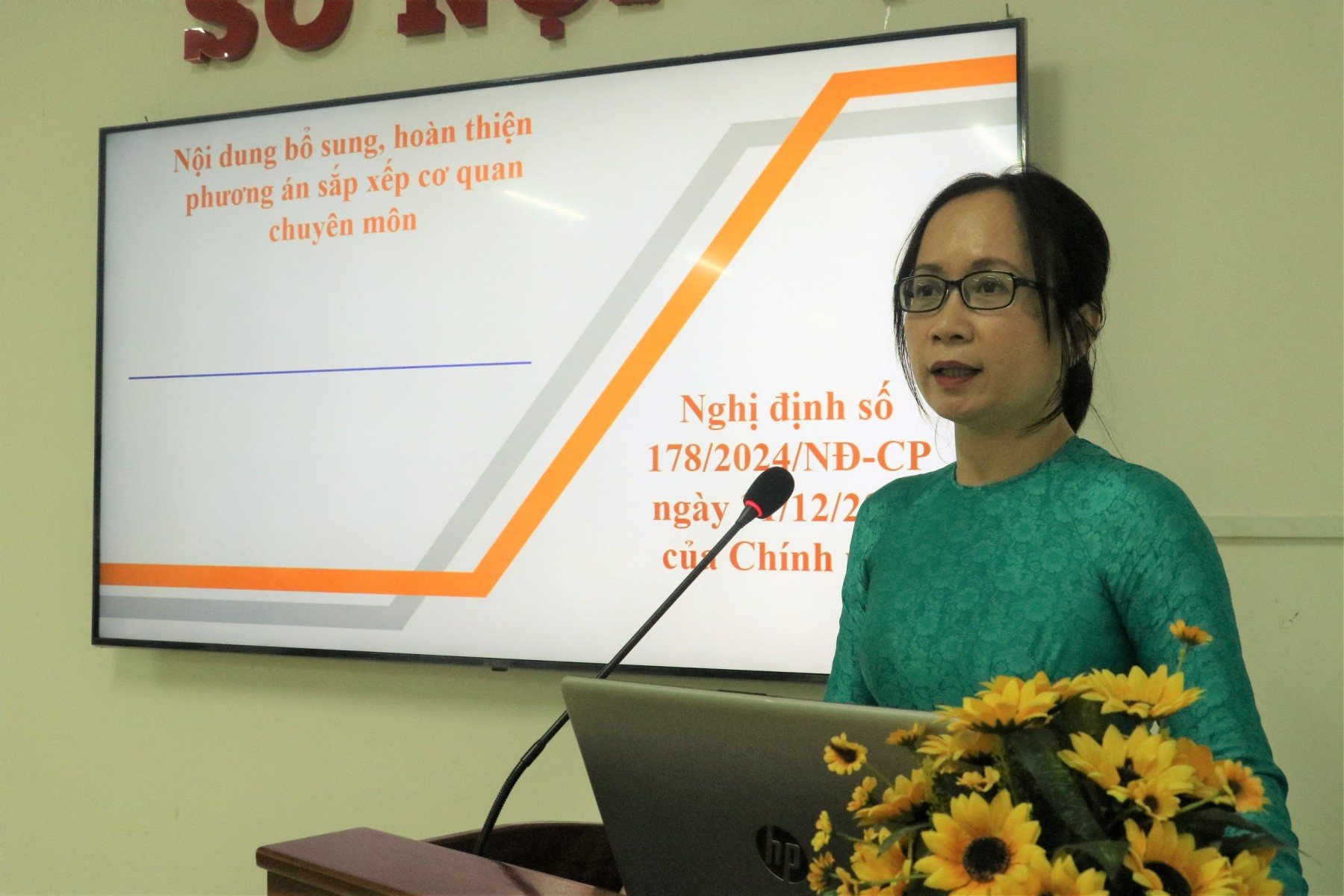 Bà Nguyễn Thị Hồng Hạnh, Phó Giám đốc Sở Nội vụ TP Cần Thơ, triển khai Nghị định số 178/2024/NĐ-CP về chính sách với cán bộ, công chức, viên chức, lực lượng vũ trang khi sắp xếp bộ máy. Ảnh: Q. THÁI
