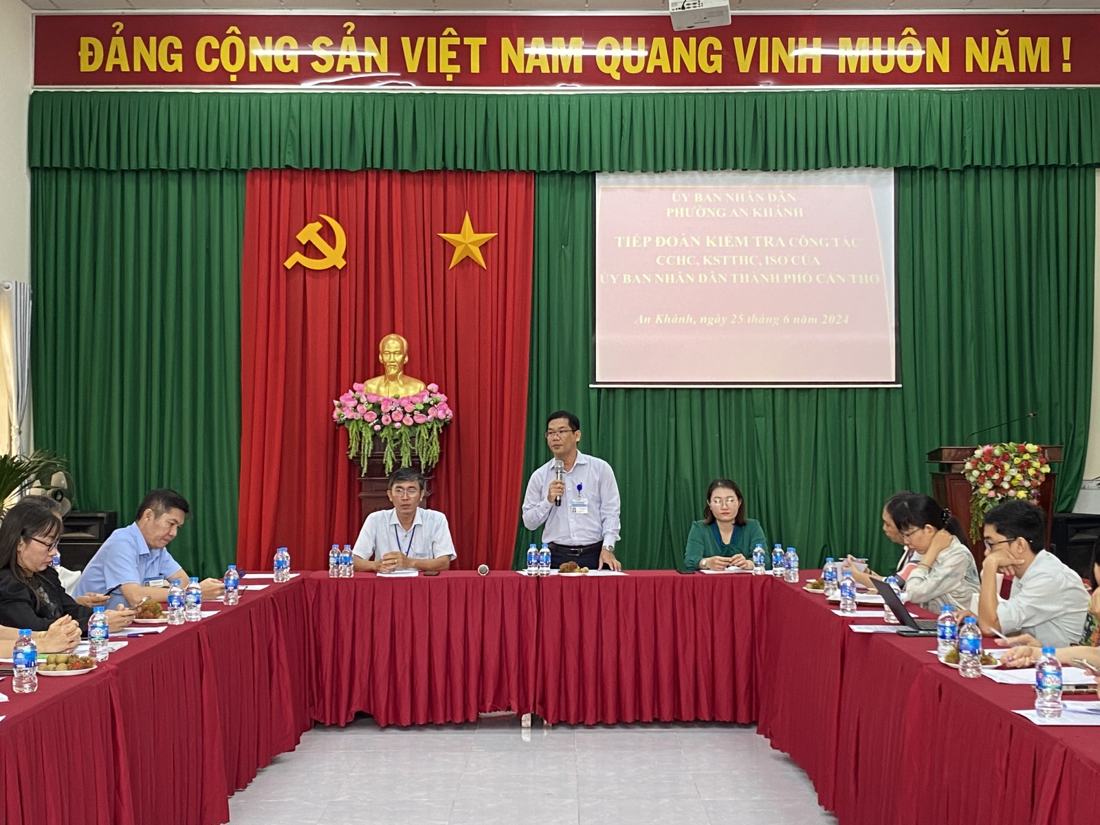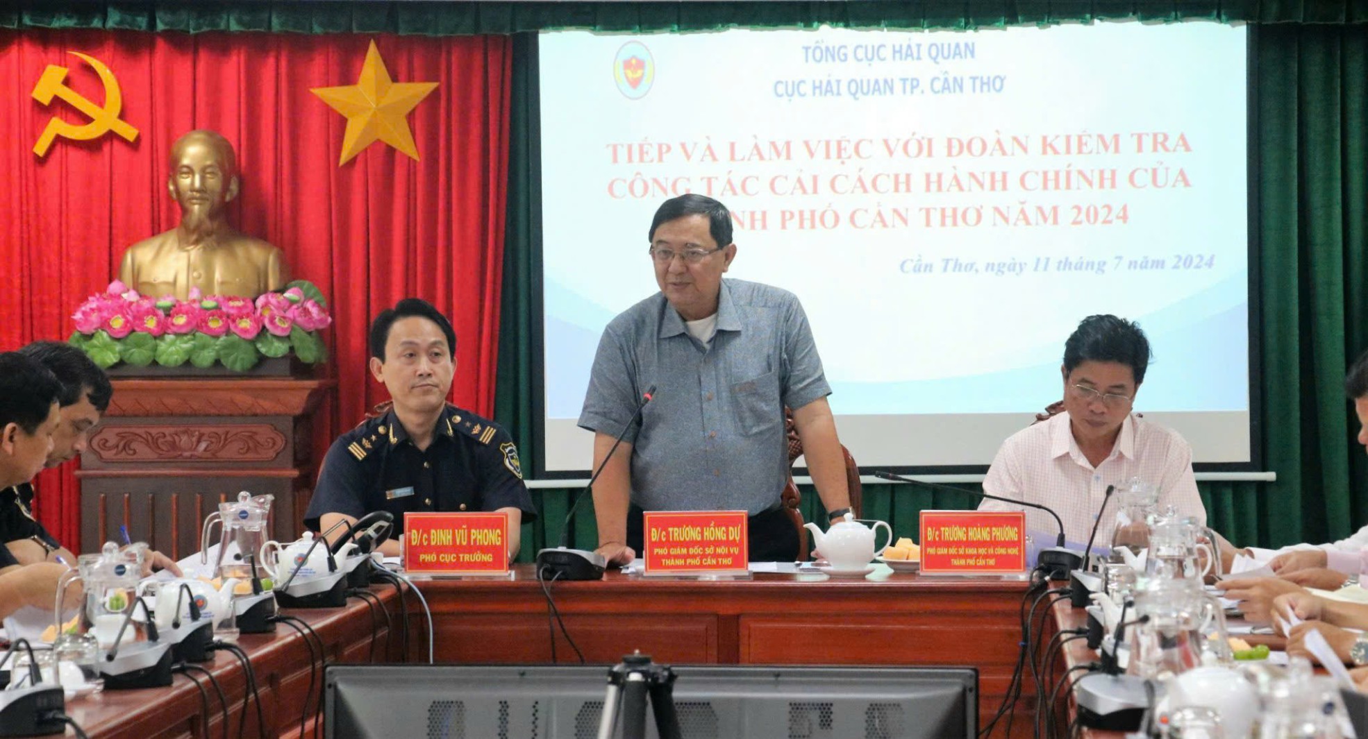 Ông Trương Hồng Dự, Phó Giám đốc Sở Nội vụ, Phó Trưởng đoàn thường trực Đoàn kiểm tra CCHC của thành phố Cần Thơ phát biểu tại buổi kiểm tra tại Văn phòng UBND thành phố