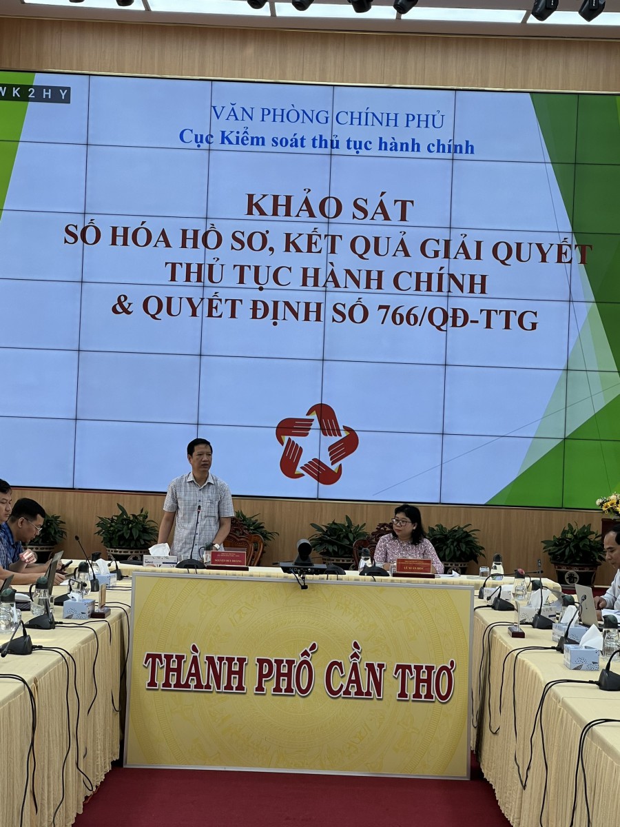 Đoàn Công tác của Văn phòng Chính phủ đã đến làm việc với Ủy ban nhân dân thành phố Cần Thơ về khảo sát, đánh giá việc triển khai số hóa hồ sơ, kết quả giải quyết thủ tục hành chính và tái cấu trúc quy trình, cung cấp dịch vụ công trực tuyến.