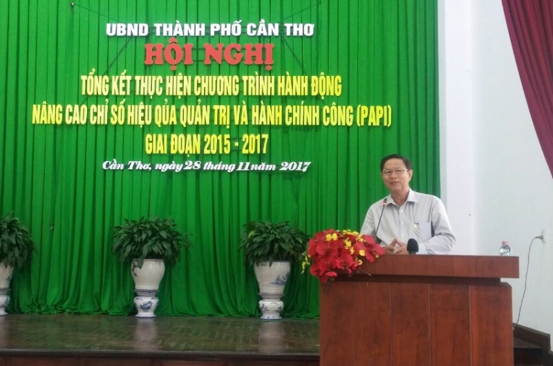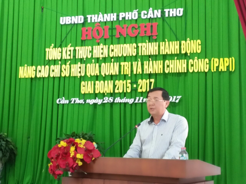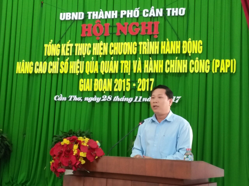 Tại Hội nghị, ông Trương Hồng Dự, Phó Giám đốc Sở Nội vụ trình bày báo cáo tóm tắt kết quả thực hiện Chương trình hành động giai đoạn 2015-2017. Theo đó, thực hiện Chương trình hành động nâng cao Chỉ số Hiệu quả Quản trị và Hành chính công (PAPI) của thành phố Cần Thơ giai đoạn 2015 – 2017, thành phố đã đạt được mục tiêu chung của Chương trình là “Phấn đấu đến năm 2017, thành phố Cần Thơ được xếp trong nhóm các tỉnh, thành phố có Chỉ số PAPI nằm trong nhóm đạt điểm cao nhất (nhóm 1)”. Qua kết quả của 03 năm đánh giá chỉ số PAPI đều có sự gia tăng thứ hạng và điểm số, cụ thể năm 2014, đạt 33,99 điểm, xếp hạng 55/63 tỉnh/thành phố; năm 2015: đạt 39,35 điểm, xếp hạng 02/63 tỉnh/thành phố và năm 2016, đạt 39,57 điểm, xếp hạng 1/63 tỉnh, thành phố. Các ngành, các cấp đã triển khai kịp thời, hiệu quả và đã hoàn thành 100% nhiệm vụ công tác đề ra của Chương trình hành động nâng cao chỉ số PAPI.