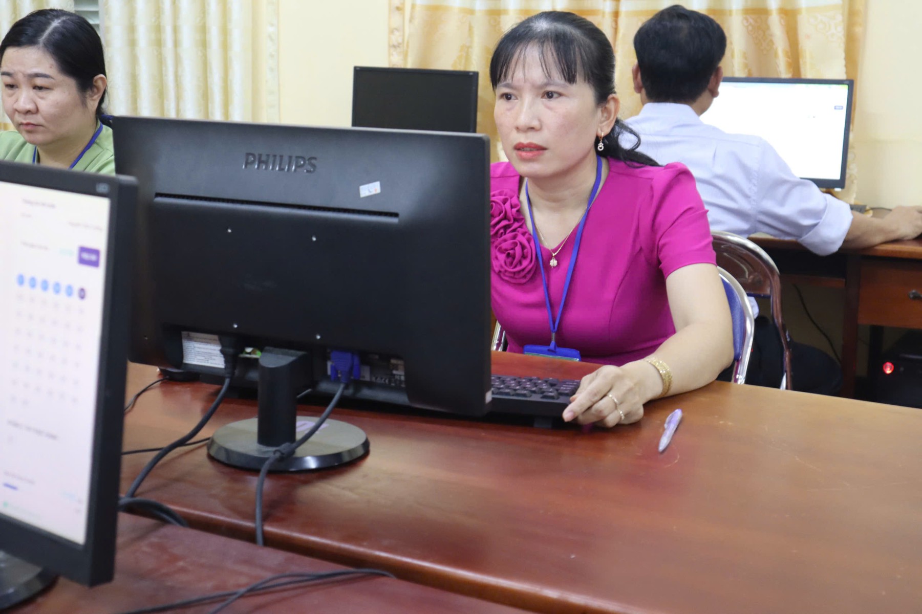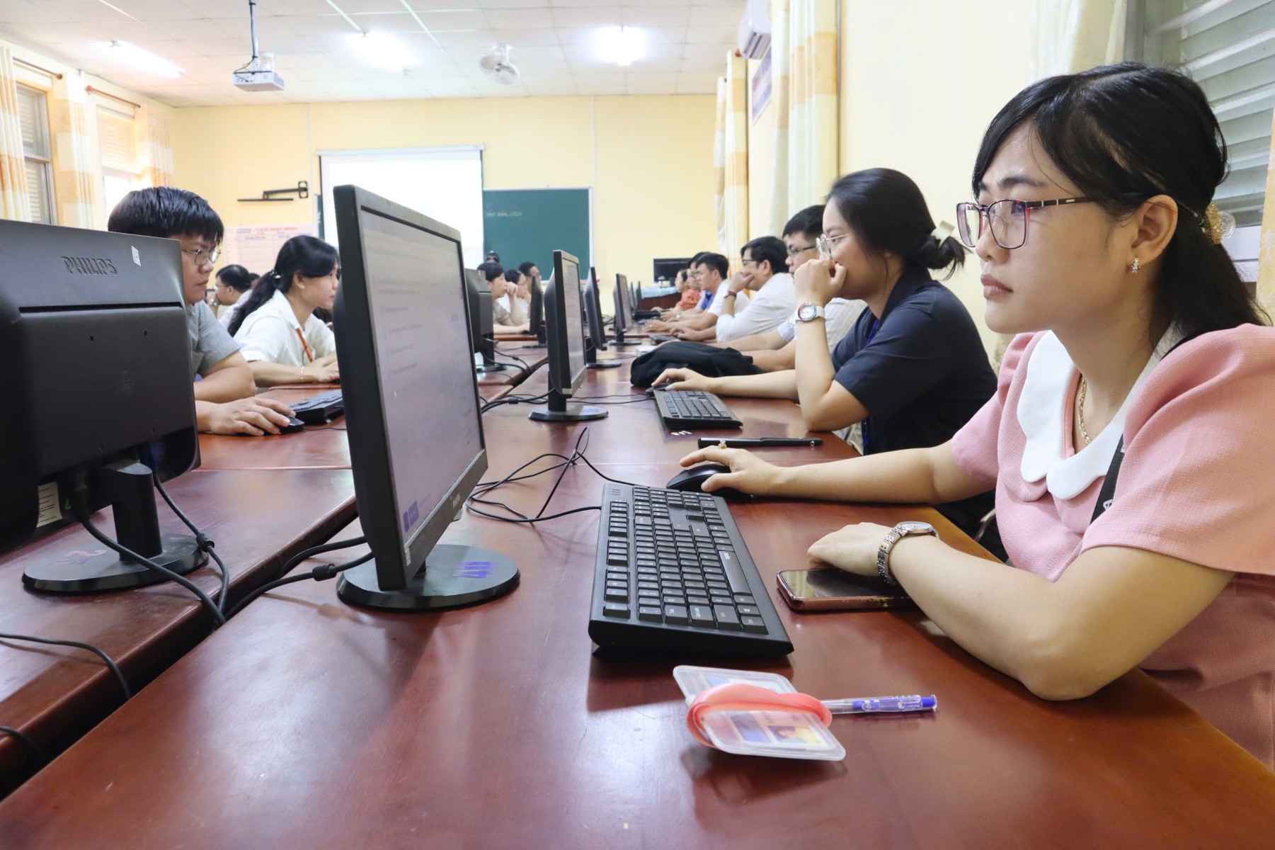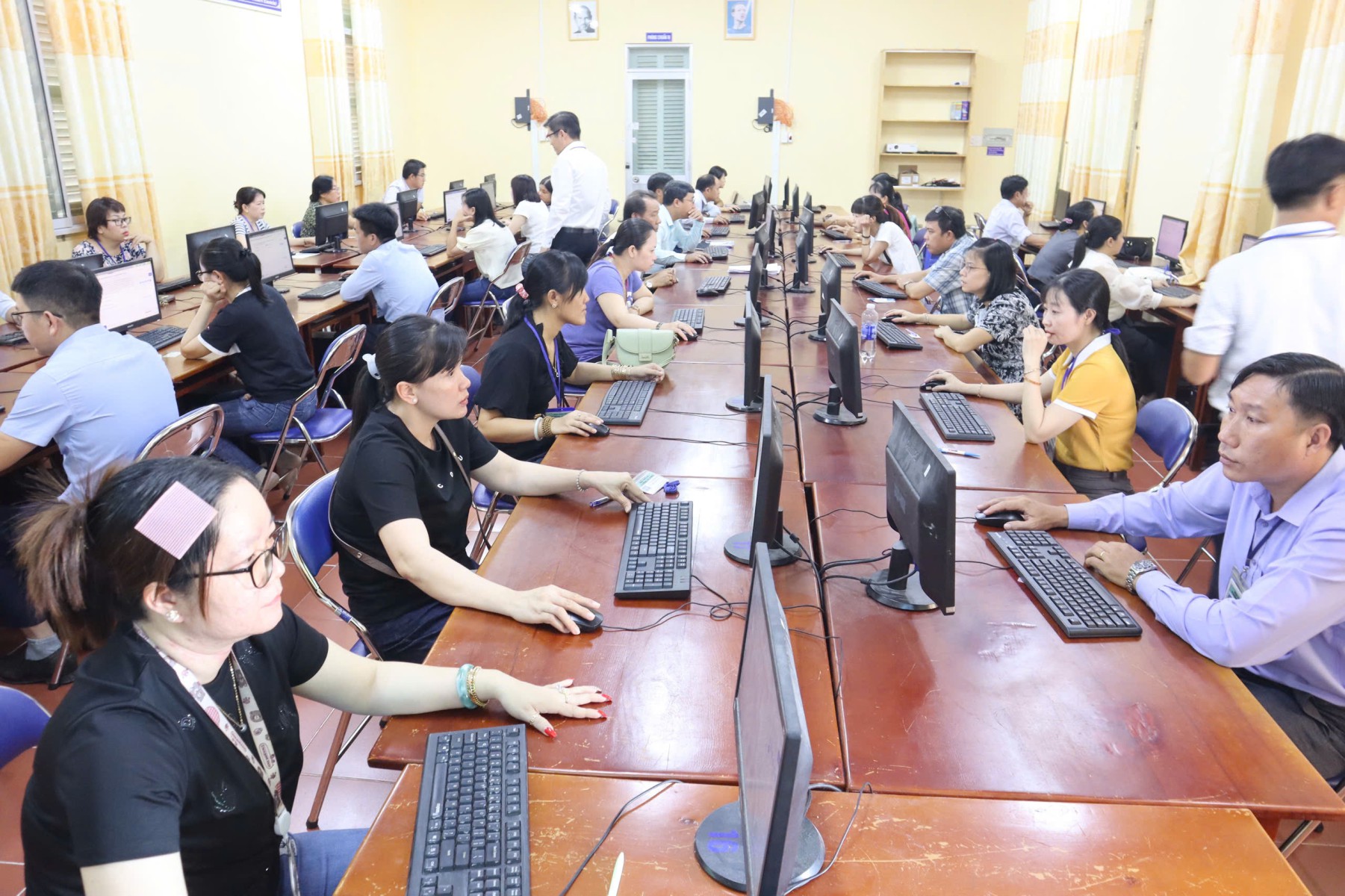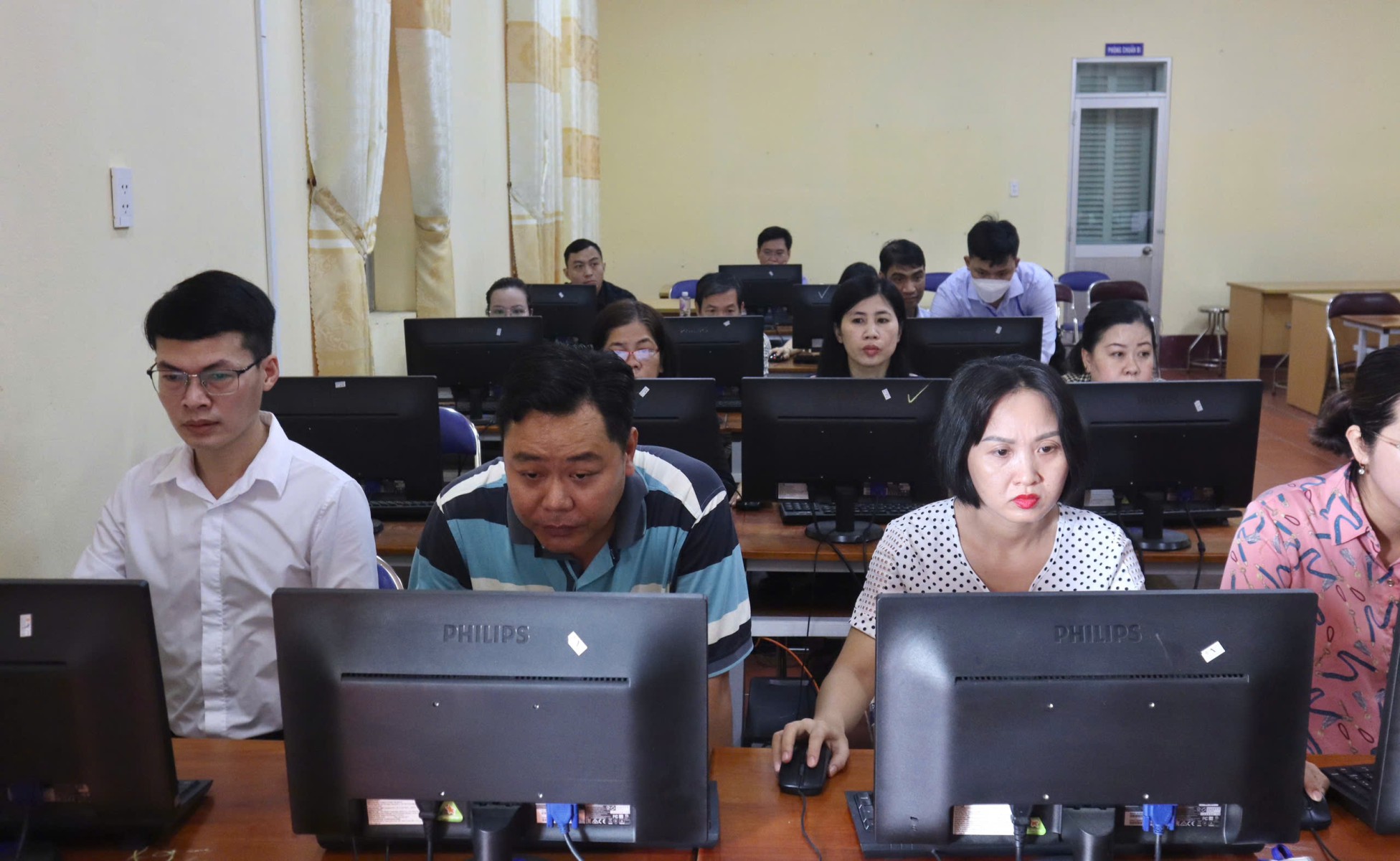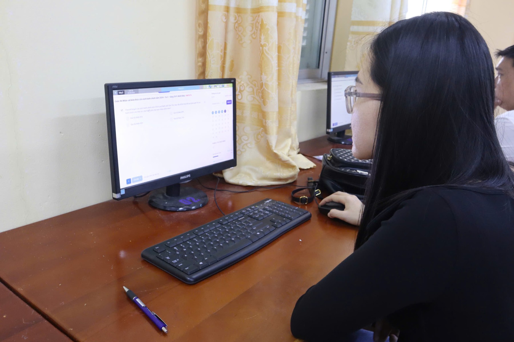 Các thí sinh là công chức tại cơ quan chuyên môn thuộc UBND thành phố thực hiện phần thi khảo sát (Ngày 29/9)