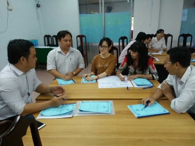 Các học viên trao đổi, thảo luận khi làm bài tập nhóm