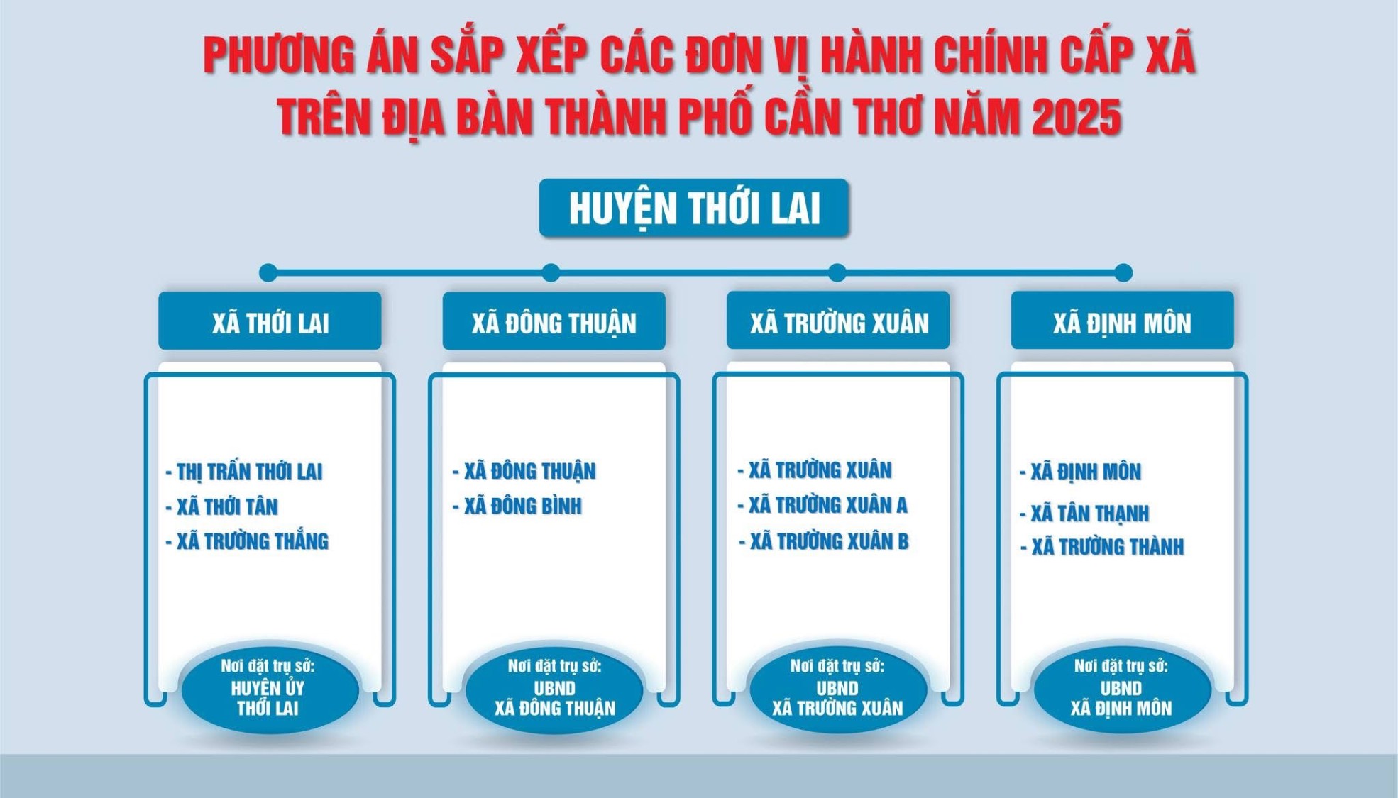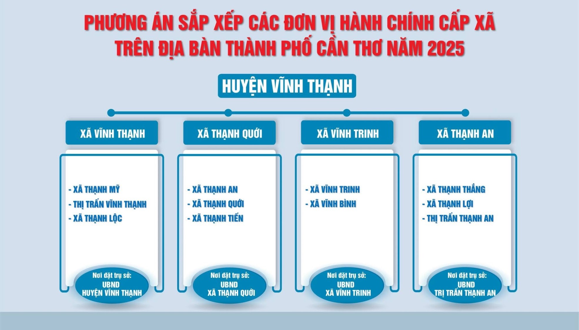 Thực hiện Kế hoạch số 74/KH-UBND ngày 04 tháng 4 năm 2025 của Ủy ban nhân dân thành phố về việc triển khai, thực hiện sắp xếp, sáp nhập đơn vị hành chính các cấp và xây dựng mô hình tổ chức chính quyền địa phương 02 cấp của thành phố Cần Thơ, để tăng cường công tác thông tin, tuyên truyền và gửi dự thảo Đề án sắp xếp ĐVHC cấp tỉnh, cấp xã để tổ chức lấy ý kiến cử tri đại diện hộ gia đình, Ủy ban nhân dân thành phố Cần Thơ vừa có văn bản đề nghị Ủy ban Mặt trận Tổ quốc Việt Nam thành phố và các tổ chức thành viên; Thủ trưởng cơ quan chuyên môn thuộc Ủy ban nhân dân thành phố, Chủ tịch UBND cấp huyện, cấp xã tiếp tục thông tin, tuyên truyền trong đoàn viên, hội viên, cán bộ, công chức, viên chức, người lao động và Nhân dân về chủ trương của Đảng, Nhà nước về sắp xếp ĐVHC cấp tỉnh, cấp xã nhằm vận động, thuyết phục, tạo được sự đồng thuận, thống nhất trong xã hội, bảo đảm dân chủ, đúng quy định pháp luật.