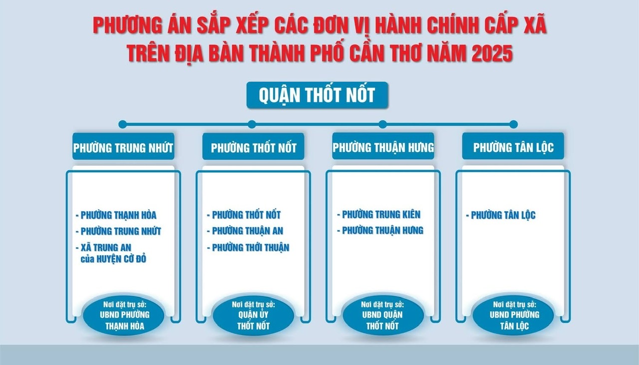 Theo dự thảo Đề án, Cần Thơ thực hiện sắp xếp 80 đơn vị hành chính cấp xã để thành lập 32 đơn vị hành chính cấp xã (gồm 16 phường và 16 xã). Đối với sắp xếp đơn vị hành chính cấp tỉnh, thành phố Cần Thơ trực thuộc Trung ương được thành lập trên cơ sở sáp nhập ĐVHC tỉnh Sóc Trăng, tỉnh Hậu Giang và thành phố Cần Thơ./.