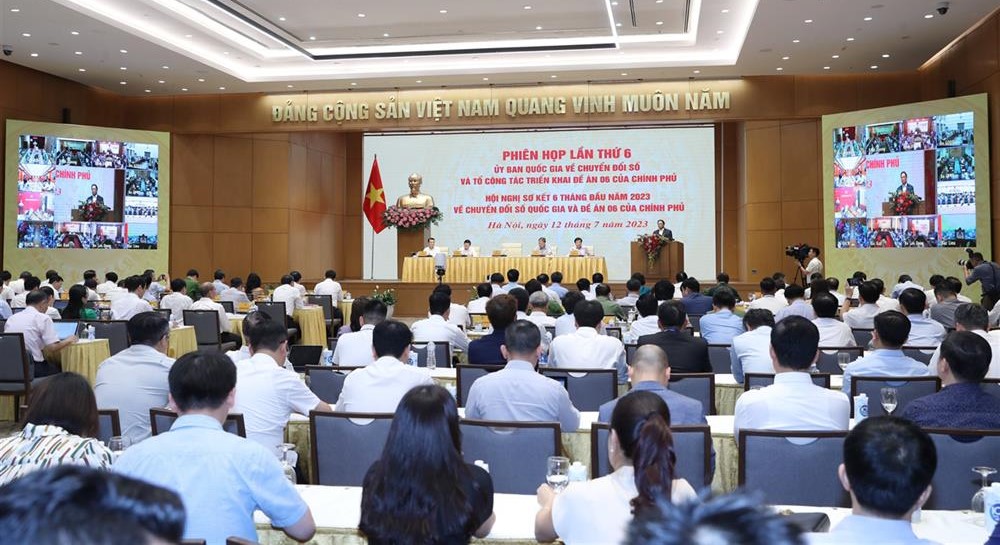 Thủ tướng Phạm Minh Chính, Chủ tịch Ủy ban Chuyển đổi số quốc gia chủ trì Hội nghị sơ kết 6 tháng đầu năm 2023 về chuyển đổi số quốc gia và Đề án 06 của Chính phủ, ngày 12/7/2023. Nguồn: bocongan.gov.vn