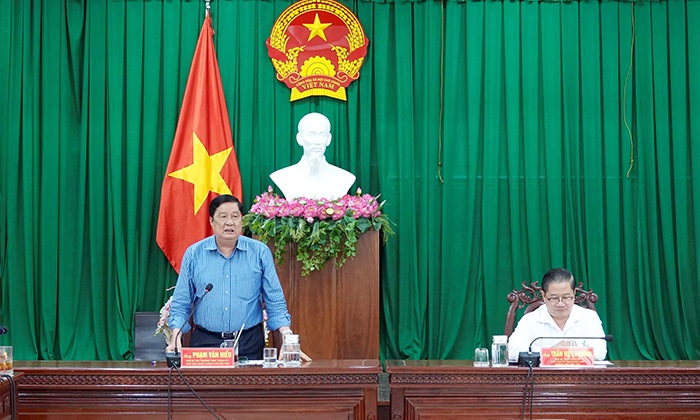 Đồng chí Phạm Văn Hiểu phát biểu kết luận cuộc họp.