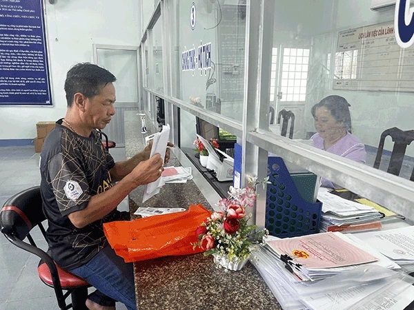 Người dân thực hiện TTHC tại Bộ phận Một cửa UBND xã Thới Xuân.