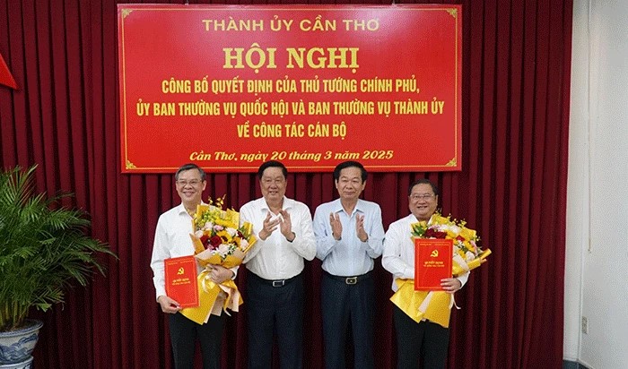 Tại hội nghị, đại diện lãnh đạo Ban Tổ chức Thành ủy công bố Quyết định số 557/QĐ-TTg ngày 8-3-2025 của Thủ tướng Chính phủ phê chuẩn kết quả bầu chức vụ Chủ tịch UBND TP Cần Thơ nhiệm kỳ 2021-2026 đối với đồng chí Trương Cảnh Tuyên, Phó Bí thư Thành ủy Cần Thơ; công bố Quyết định số 1549/NQ-UBTVQH15 ngày 3-3-2025 của Ủy ban Thường vụ Quốc hội phê chuẩn đồng chí Trần Quốc Vũ, Thành ủy viên, Bí thư Quận ủy, Chủ tịch HĐND quận Bình Thủy giữ chức Phó Chủ tịch HĐND TP Cần Thơ nhiệm kỳ 2021-2026.