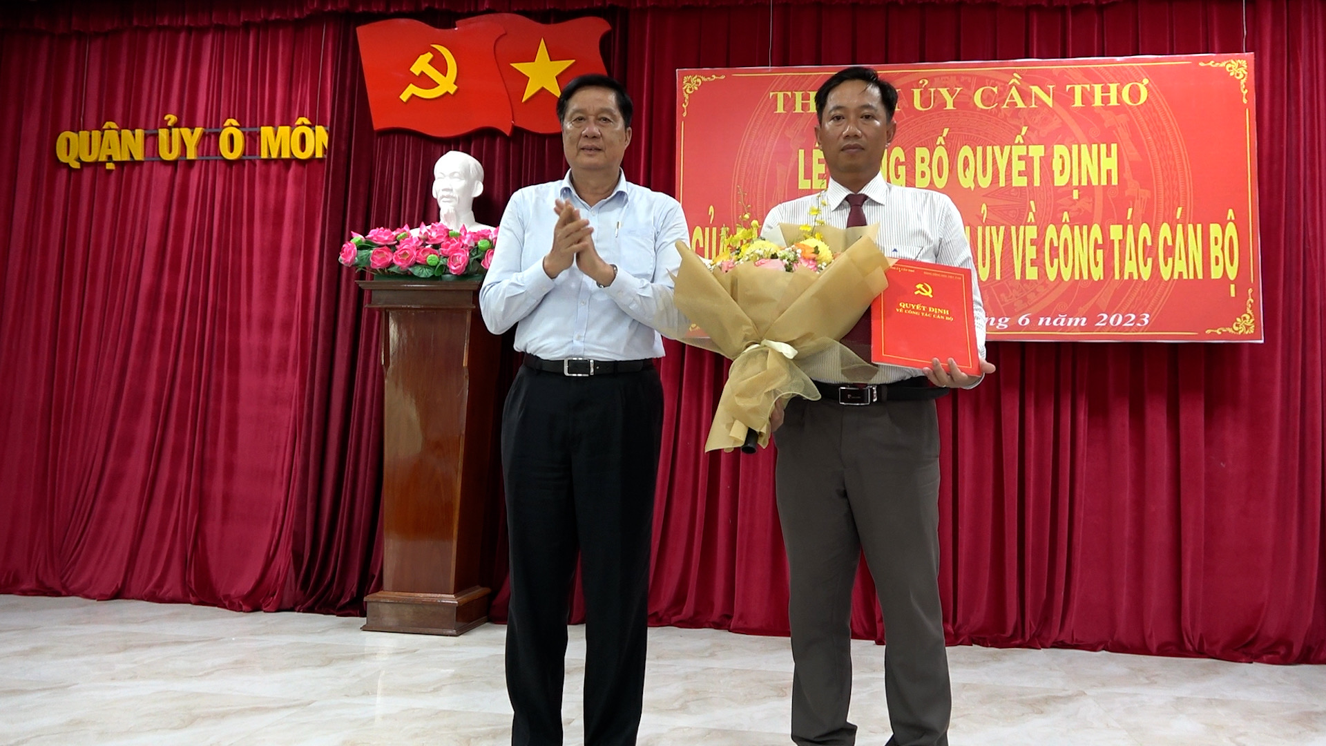 (CT) - Ngày 20-6, Thành ủy Cần Thơ tổ chức lễ công bố quyết định về công tác bộ của Ban Thường vụ (BTV) Thành ủy tại Quận ủy Ô Môn. Các đồng chí: Phạm Văn Hiểu, Phó Bí thư Thường trực Thành ủy, Chủ tịch HĐND thành phố; Lê Tấn Thủ, Ủy viên BTV, Trưởng Ban Tổ chức Thành ủy đến dự. Tại buổi lễ, đồng chí Lê Tấn Thủ công bố quyết định của BTV Thành ủy Cần Thơ về việc chuẩn y chức danh Phó Bí thư Quận ủy Ô Môn, nhiệm kỳ 2020-2025 đối với đồng chí Huỳnh Ngọc Thuần, Trưởng Ban Tổ chức Quận ủy Ô Môn.