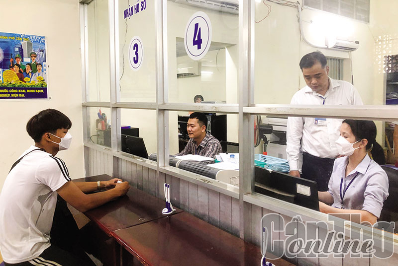Công chức Bộ phận Một cửa Sở Giao thông vận tải TP Cần Thơ xử lý hồ sơ của người dân.