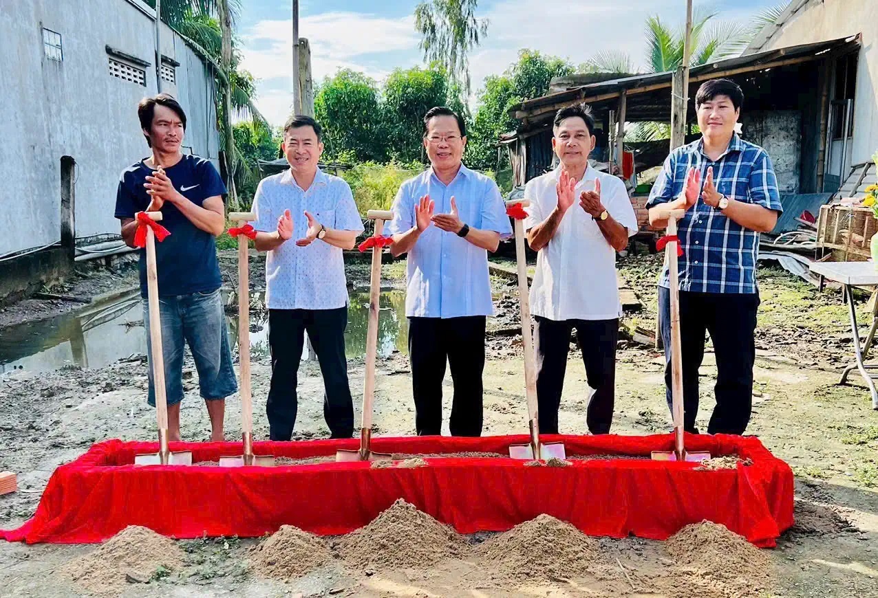 Đảng ủy xã Thới Đông chỉ đạo tăng cường phối hợp, thực hiện tốt công tác an sinh xã hội năm 2023. Trong ảnh: Lãnh đạo Sở Nội vụ và xã thực hiện nghi thức khởi công xây 3 căn nhà Đại đoàn kết tặng các hộ đồng bào dân tộc Khmer.