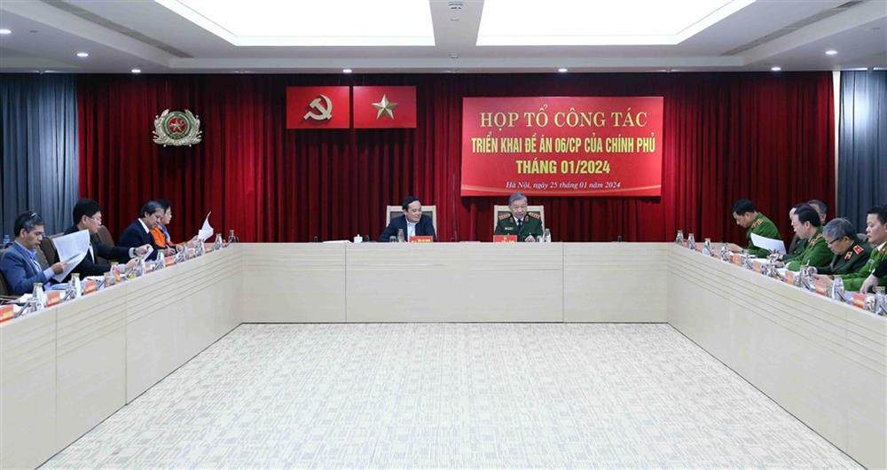 Phát biểu kết luận cuộc họp, Bộ trưởng Tô Lâm nhấn mạnh, để tiếp tục triển khai thực hiện các nhiệm vụ trong năm 2024 được coi là năm tiền đề quan trọng, tạo đà hoàn thành các mục tiêu Đề án 06 đề ra trong năm 2025 và cả giai đoạn 2022-2025, đề nghị các bộ, ngành, thành viên Tổ Công tác và UBND các địa phương khẩn trương ban hành Kế hoạch triển khai trong năm 2024; đồng thời, đề nghị Văn phòng Chính phủ phối hợp chặt chẽ với Bộ Công an hoàn thiện Chỉ thị của Thủ tướng Chính phủ về tăng cường đẩy mạnh thực hiện Đề án 06 tại các bộ, ngành, địa phương trong năm 2024 và những năm tiếp theo.