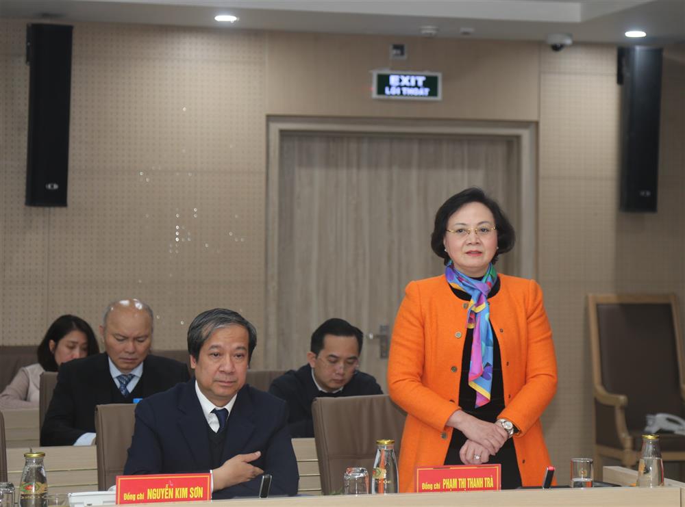 Bộ trưởng Bộ Nội vụ Phạm Thị Thanh Trà phát biểu tại cuộc họp. Ảnh: bocongan.gov.vn