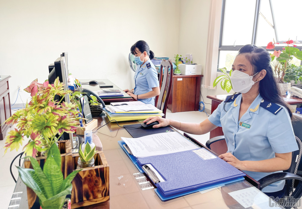 Cán bộ Cục Hải quan TP Cần Thơ xử lý hồ sơ trên nền tảng số.