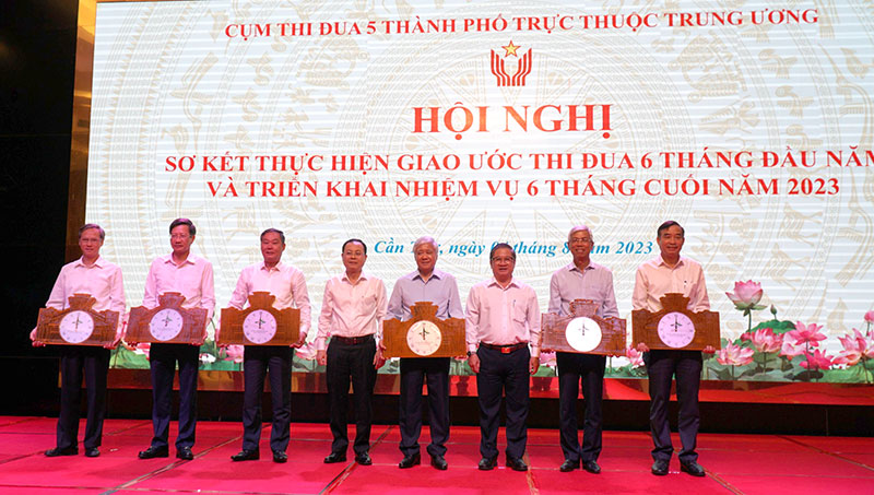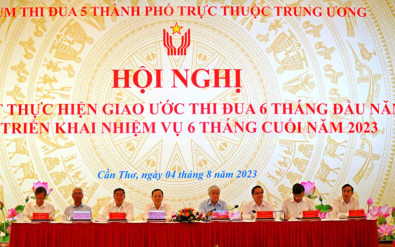 (CTO) - Sáng 4-8, tại TP Cần Thơ, Cụm thi đua 5 thành phố trực thuộc Trung ương gồm TP Hà Nội, TP Hồ Chí Minh, TP Hải Phòng, TP Đà Nẵng và TP Cần Thơ tổ chức Hội nghị sơ kết thực hiện giao ước thi đua 6 tháng đầu năm và triển khai nhiệm vụ 6 tháng cuối năm 2023.