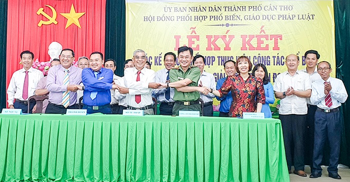 Tại buổi lễ, Sở Tư pháp - Cơ quan Thường trực Hội đồng Phối hợp PBGDPL thành phố, ký kết kế hoạch phối hợp với các đơn vị: Ủy ban MTTQVN thành phố, Sở Giáo dục và Đào tạo, Sở Nội vụ, Công an thành phố, Hội LHPN thành phố, Ban Dân tộc thành phố, Thành đoàn, Ban An toàn giao thông thành phố và Hội Luật gia TP Cần Thơ.