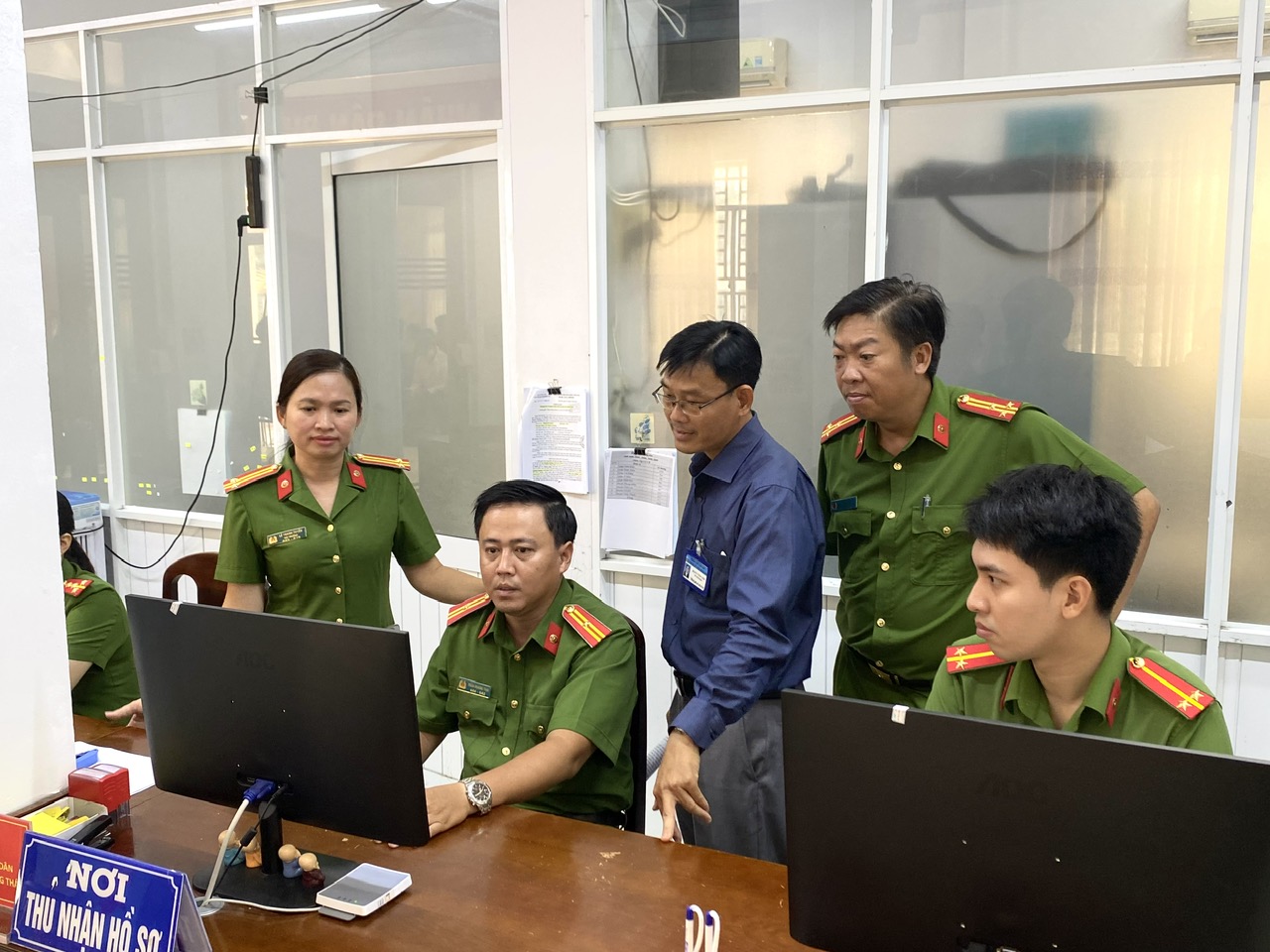 Đoàn Kiểm tra thực hiện kiểm tra tại Bộ phận tiếp nhận và trả kết quả Công an thành phố