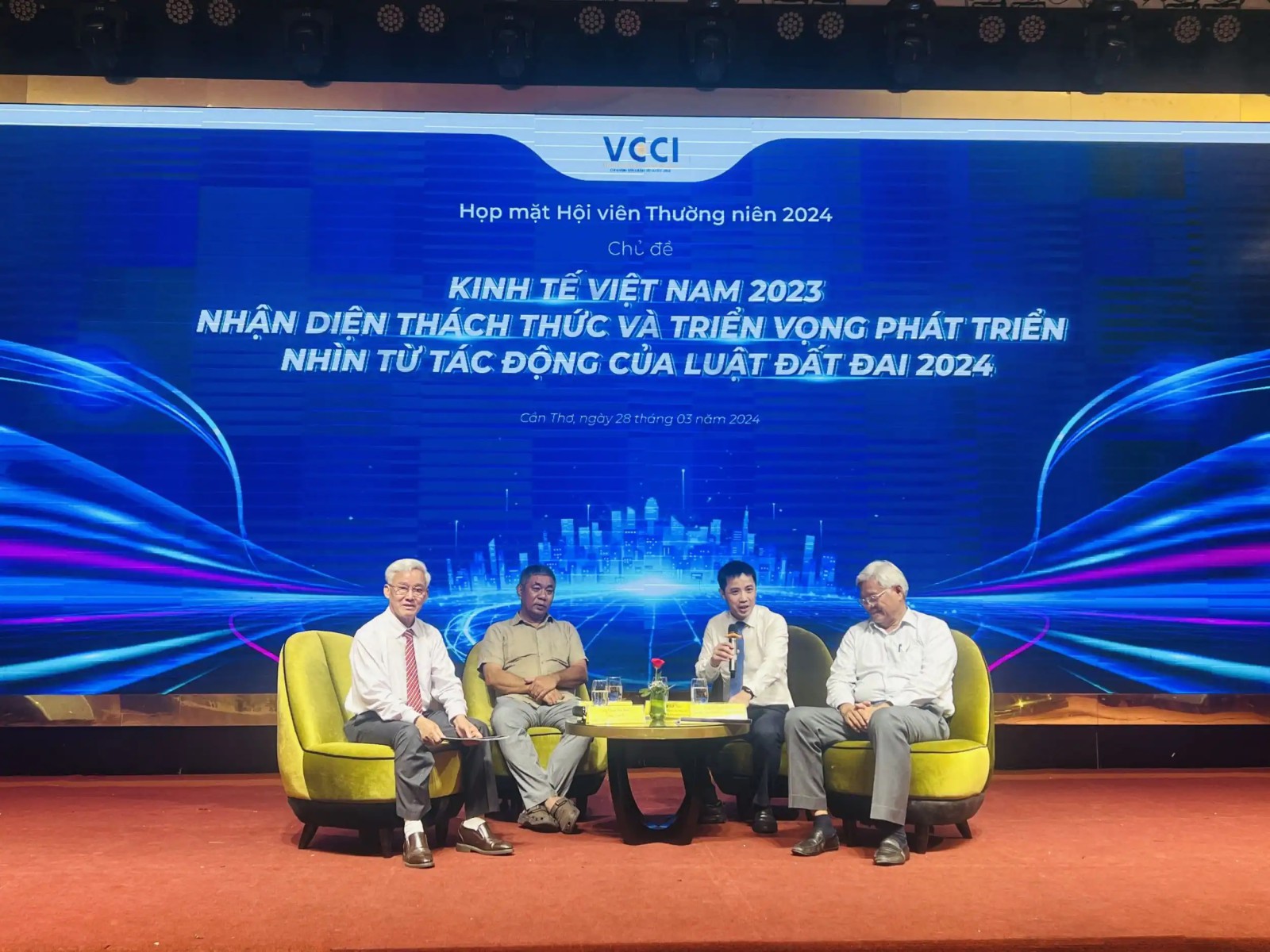 (CT) - Ngày 28-3, Liên đoàn Thương mại và Công nghiệp Việt Nam (VCCI) chi nhánh ÐBSCL tổ chức họp mặt hội viên thường niên năm 2024 với chủ đề “Kinh tế Việt Nam năm 2024, nhận diện thách thức và triển vọng phát triển nhìn từ tác động của Luật Ðất đai năm 2024”. Dự họp mặt có ông Dương Tấn Hiển, Phó Chủ tịch Thường trực UBND TP Cần Thơ, cùng các doanh nghiệp (DN) hội viên của VCCI khu vực ÐBSCL.