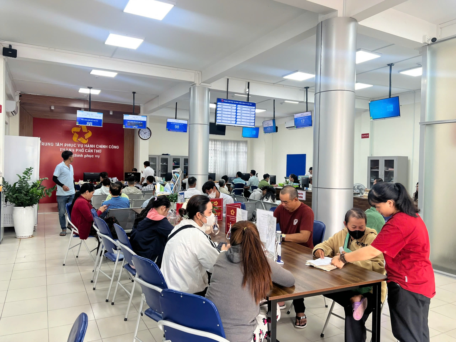 Người dân thực hiện thủ tục hành tại Trung tâm Phục vụ hành chính công thành phố Cần Thơ