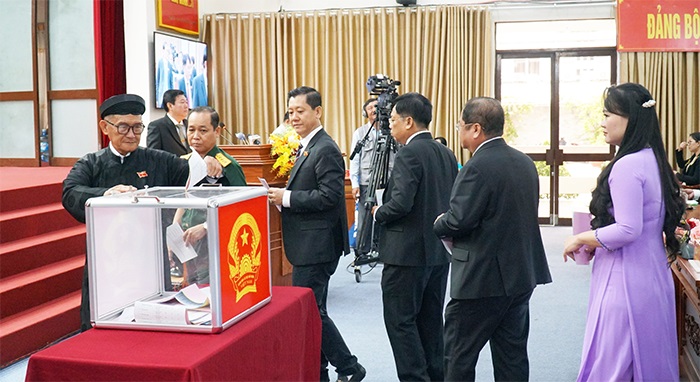 Đại biểu HĐND thành phố bỏ phiếu tín nhiệm đối với người giữ chức vụ do HĐND thành phố bầu. Ảnh: ANH DŨNG