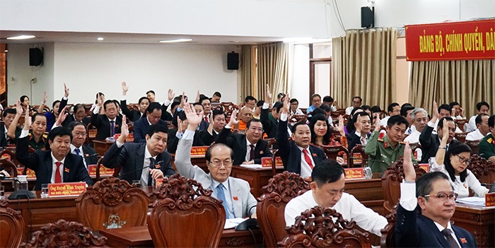 Đại biểu HĐND thành phố biểu quyết thông qua Nghị quyết xác nhận kết quả lấy phiếu tín nhiệm đối với người giữ chức vụ do HĐND thành phố bầu. Ảnh: ANH DŨNG