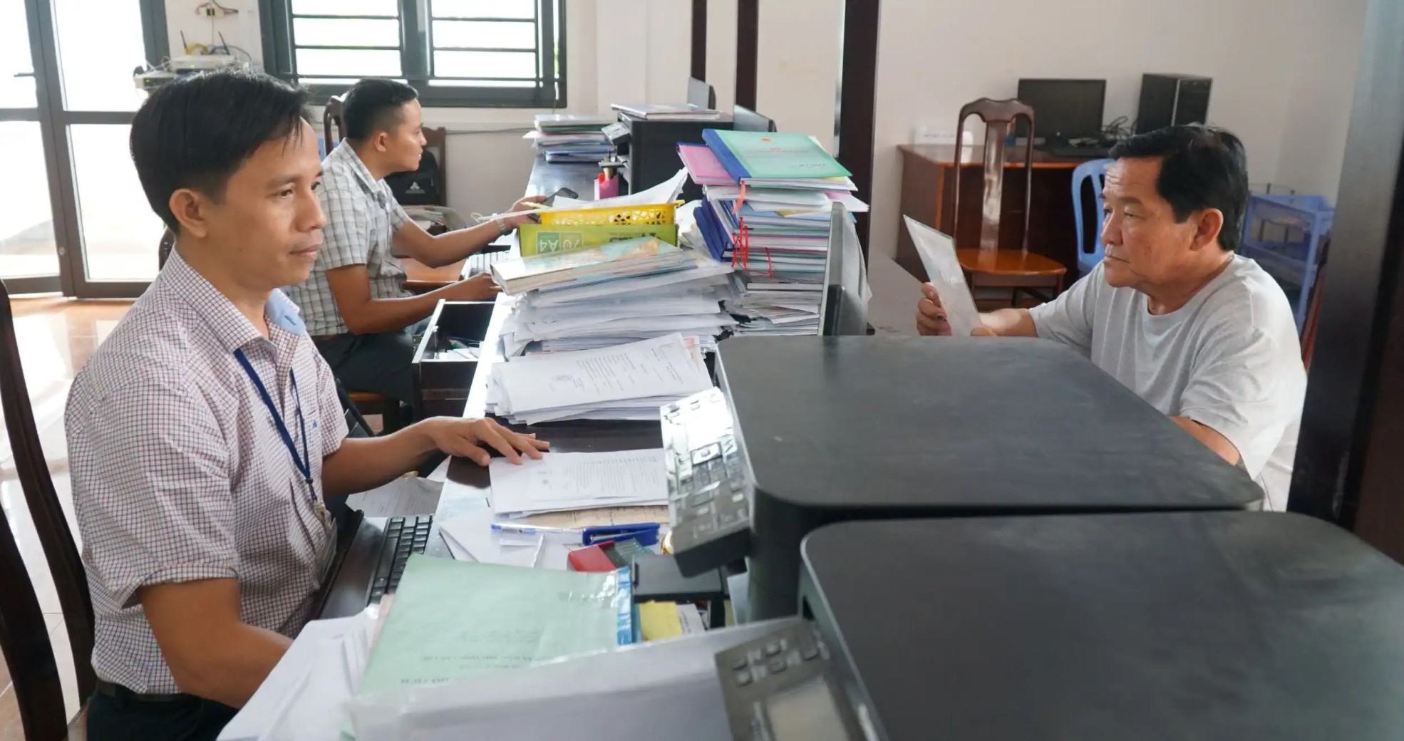 Công chức Bộ phận Một cửa phường Tân Lộc tiếp nhận và giải quyết thủ tục hành chính cho người dân trên Cổng dịch vụ công trực tuyến.