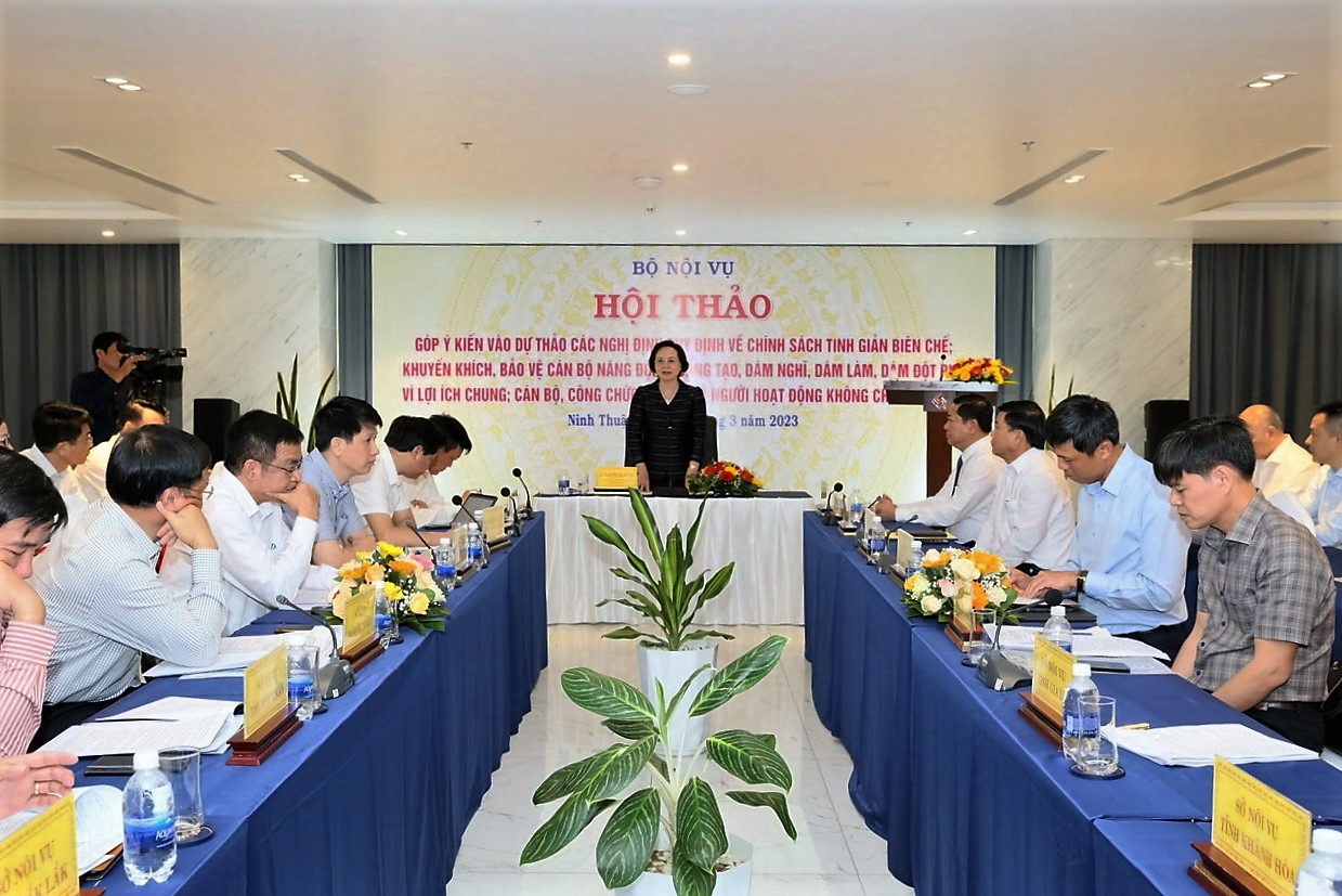 Tham dự Hội thảo có Thứ trưởng Nguyễn Duy Thăng; Chủ tịch UBND tỉnh Ninh Thuận Trần Quốc Nam; lãnh đạo Sở Nội vụ 14 tỉnh, thành khu vực Miền Trung và Tây Nguyên.