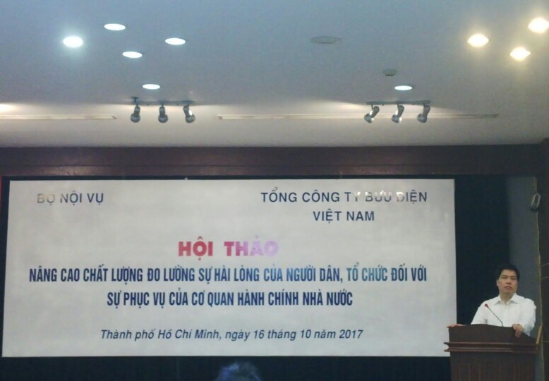 Sáng ngày 17 tháng 10, Bội Nội vụ phối hợp với Tổng công ty Bưu điện Việt Nam tổ chức Hội thảo nâng cao chất lượng đo lường sự hài lòng của người dân, tổ chức đối với sự phục vụ của cơ quan hành chính nhà nước cho 23 tỉnh, thành phố trực thuộc Trung ương phía Nam. Vụ trưởng vụ Cải cách hành chính Phạm Minh Hùng chủ trì hội thảo.