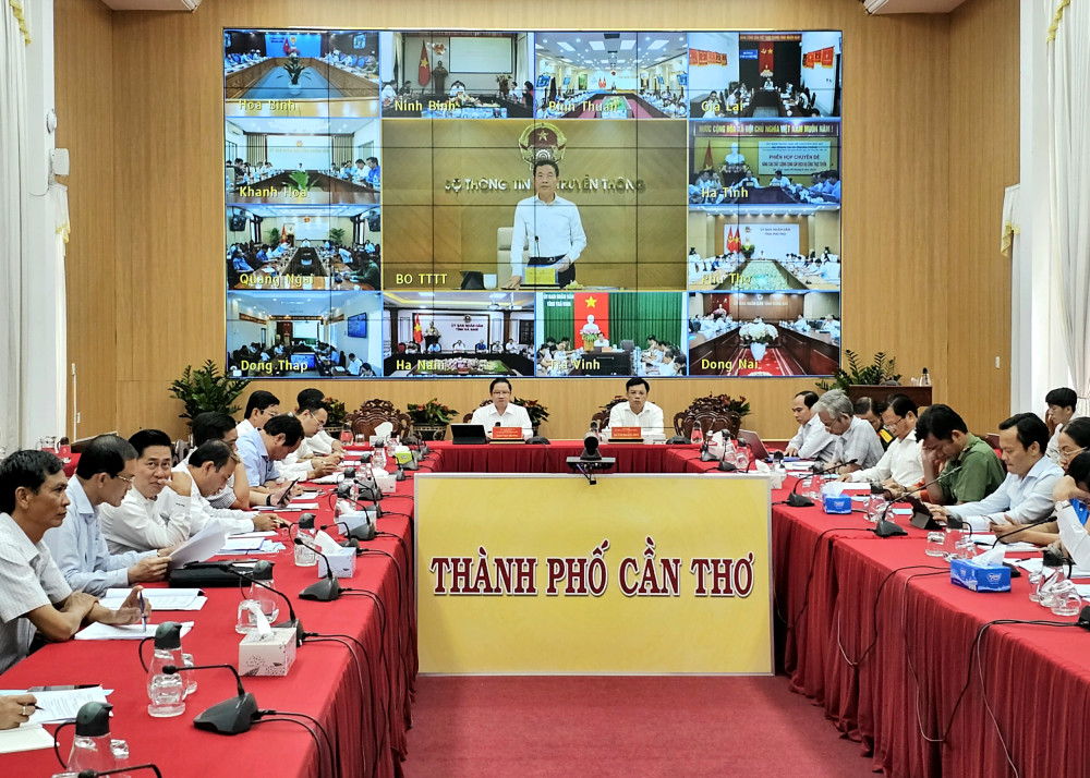 Lãnh đạo TP Cần Thơ, các sở, ngành thành phố dự Phiên họp trực tuyến chuyên đề “Thay đổi căn bản cung cấp DVCTT” tại điểm cầu của TP Cần Thơ.