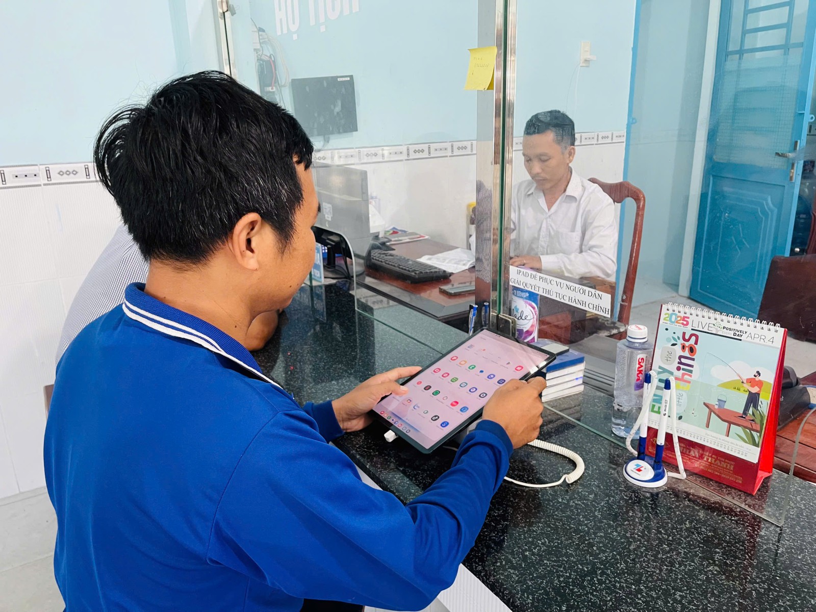 Người dân nộp hồ sơ trực tuyến tại Bộ phận tiếp nhận và Trả kết quả tại UBND xã Thạnh Phú