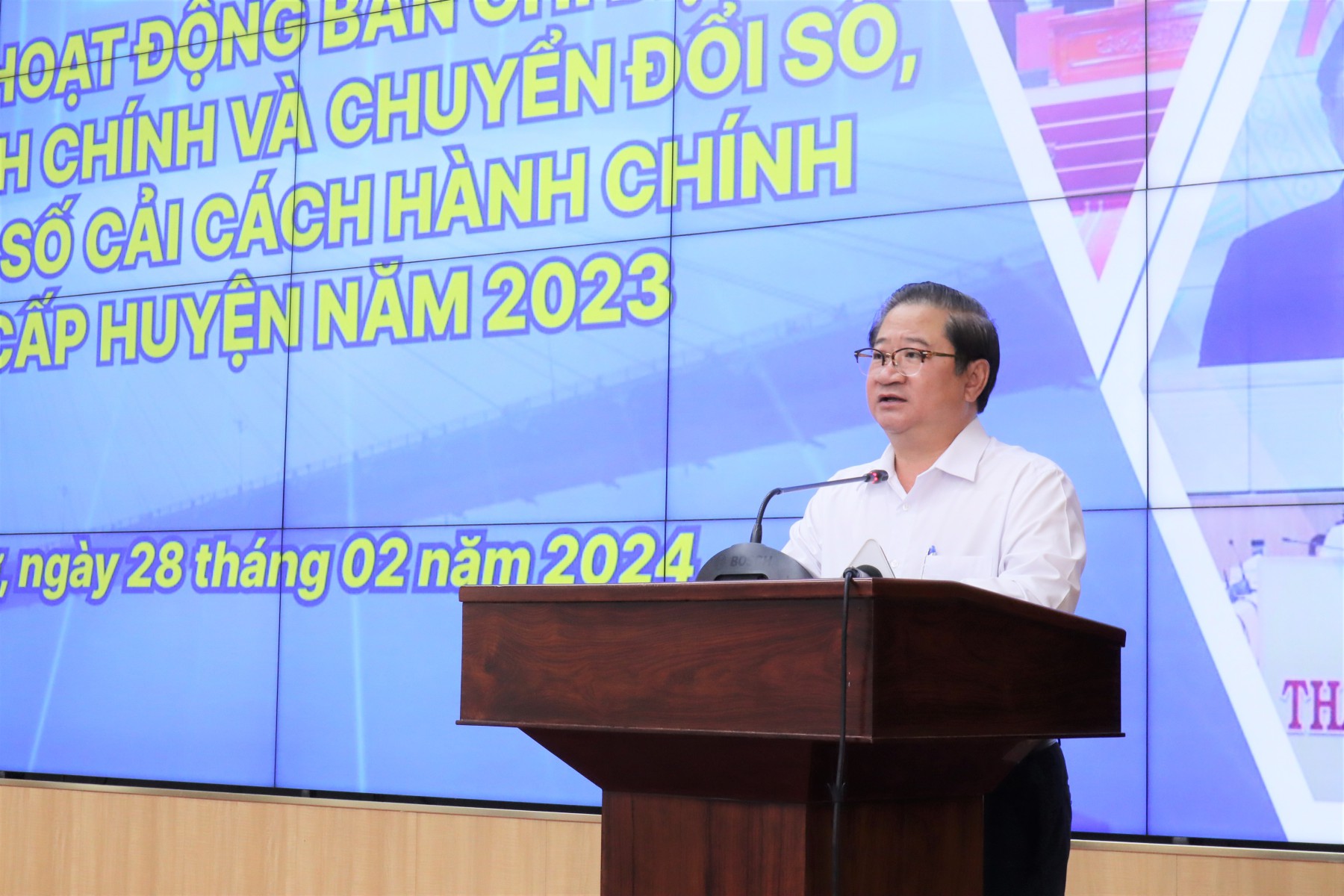 Ông Trần Việt Trường, Chủ tịch UBND thành phố Cần Thơ, Trưởng Ban Chỉ đạo Cải cách hành chính và Chuyển Đổi số thành phố phát biểu chỉ đạo tại Hội nghị Công bố chỉ số CCHC năm 2023