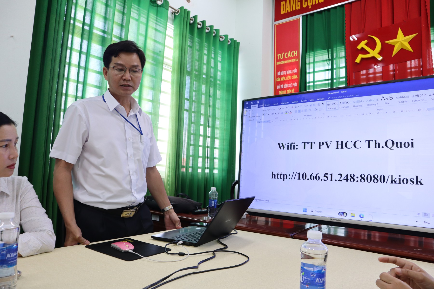 Hình 2: Ông Vương Quốc Phong, Phó Giám đốc Trung tâm phục vụ hành chính công xã Thạnh Quới, báo cáo về hoạt động của mô hình
