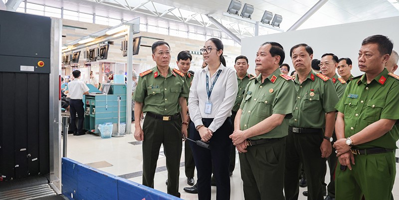 Đoàn kiểm tra khu vực soi chiếu hành lý tại Cảng hàng không Quốc tế Cần Thơ. Ảnh: Công an TP Cần Thơ