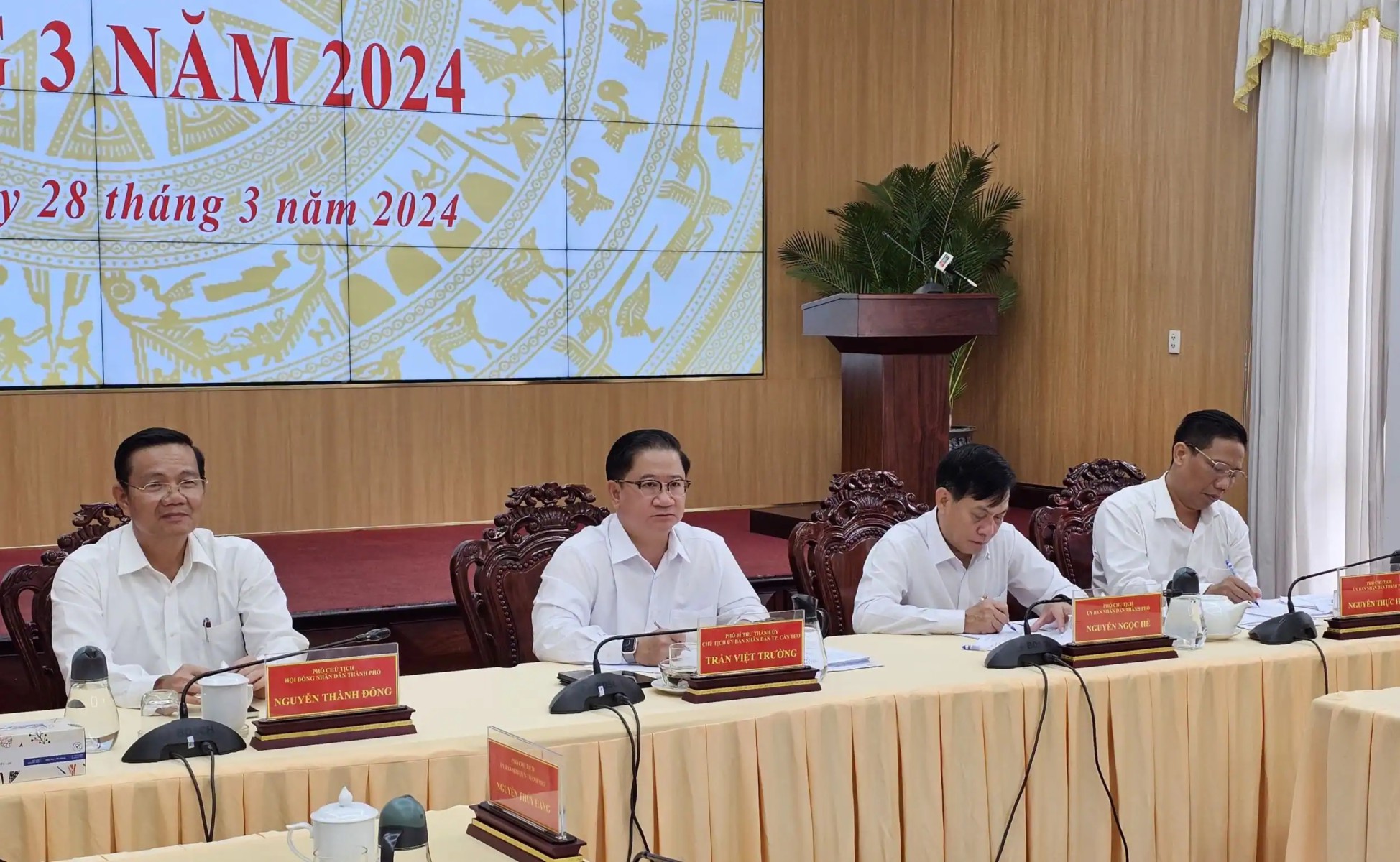 Phát biểu chỉ đạo tại phiên họp, đồng chí Trần Việt Trường đánh giá cao các kết quả đạt được và chỉ rõ những hạn chế còn tồn tại cần được các sở ngành, địa phương khẩn trương khắc phục nhằm đạt kết quả cao mục tiêu phát triển KT-XH, tạo động lực thúc đẩy phát triển và tăng trưởng trong năm 2024. Ðồng chí yêu cầu giám đốc các sở, ban ngành thành phố, thủ trưởng cơ quan và chủ tịch UBND các quận, huyện cần tiếp tục quan tâm triển khai thực hiện tốt các nhiệm vụ, giải pháp và chương trình, kế hoạch phát triển KT-XH năm 2024 của Trung ương và thành phố. Tập trung đẩy mạnh cải cách thủ tục hành hành, cắt giảm điều kiện kinh doanh. Thực hiện hiệu quả Quyết định số 1605/QÐ-UBND thành phố về việc thành lập Tổ công tác đặc biệt về hỗ trợ xúc tiến đầu tư và tháo gỡ khó khăn, vướng mắc, hỗ trợ doanh nghiệp, nhà đầu tư vào thành phố. Tổ chức hoạt động hiệu quả Trung tâm Phục vụ Hành chính công thành phố. Triển khai tốt công tác chuyển đổi số. Chủ động xử lý, tháo gỡ khó khăn, vướng mắc, đẩy nhanh tiến độ các công trình, dự án. Tăng cường công tác quản lý, kiểm soát giá cả thị trường, phòng chống gian lận thương mại. Chủ động triển khai các giải pháp phòng, chống hạn mặn, sạt lở, bệnh dịch trên cây trồng, vật nuôi. Thực hiện tốt công tác an sinh xã hội, quan tâm hỗ trợ kịp thời các đối tượng chính sách…