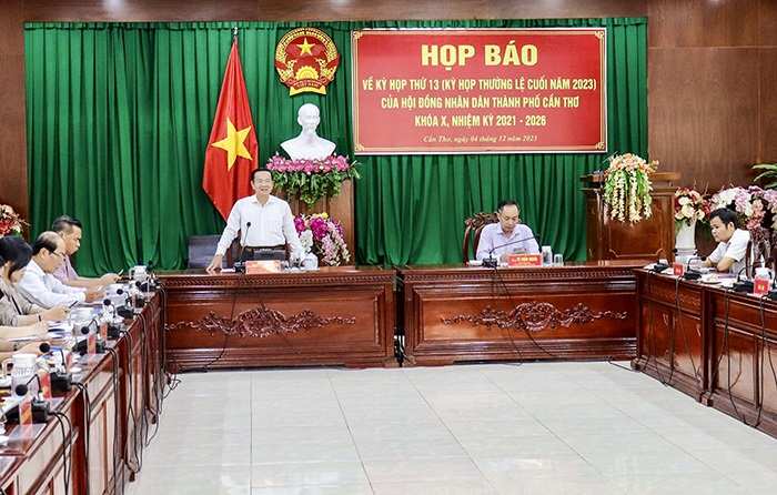 (CT) - Sáng ngày 4-12, đồng chí Nguyễn Thành Đông, Phó Chủ tịch HĐND thành phố, chủ trì buổi họp báo của Thường trực HĐND thành phố thông tin về kỳ họp thứ 13 (kỳ họp thường lệ cuối năm 2023) của HĐND TP Cần Thơ khóa X, nhiệm kỳ 2021-2026.