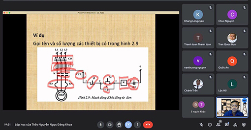 Anh Nguyễn Ngọc Đăng Khoa (góc phải), giảng viên Trường Cao đẳng Nghề Cần Thơ, đang giảng dạy trực tuyến.