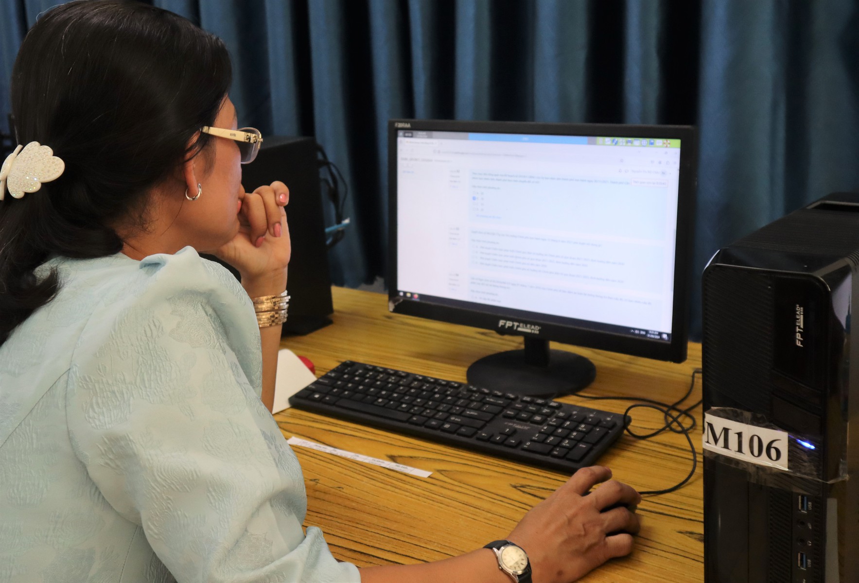 Thí sinh dự thi trong Cuộc thi Đánh giá năng lực ứng dụng CNTT, Chuyển đổi số trong hoạt động quản lý, điều hành của cán bộ, công chức, viên chức lãnh đạo, quản lý năm 2024